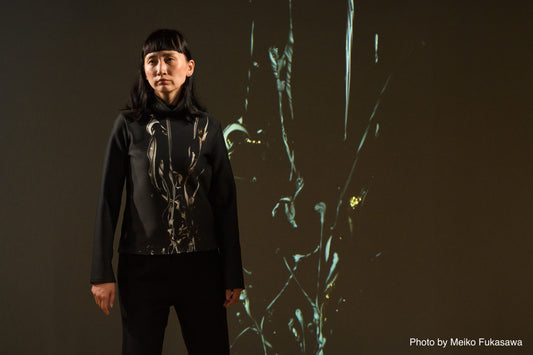 In this 2023 Spring/Summer season that characterizes the after-corona, the vitality of the baby's first cry and heartbeat inspired the designer Naoko Tosa. A baby's first cry brought life to the collection, expressing the state of a lively society that has overcome the coronavirus. She established a stateless and stylish fashion style by fusing the Wabi-Sabi elements of Japanese culture with technology. The new 24 look consists entirely of a set-up or a suit. It presents the Sound of Ikebana Fashion, which was born from sound and cannot be seen with the naked eye, along with the story of Iwatogakure of the Japanese god Amaterasu, included in the Kojiki, Japanese mythology. The younger brother of Amaterasu, Susanoo, is a rambunctious and mischievous boy who wears the traditional Japanese attire, Kataginu. The baby's first cry is also naughty. The following fashion features a fresh perspective design with passionate flames representing Susanoo, and a striking black-and-white contrast set-up will appear. Amaterasu hides in a cave with the tail of her patient bag cut off. Then, Susanoo changes his heart and walks down the runway in a tailored suit with blue clouds. After that, girls appear dressed in soft fabric dresses, shimmering fabrics, and gorgeous embellishments that sparkle in the light. A shrine maiden dances, prays and creates a big entertainment. Invited by the joyful atmosphere, Amaterasu's clothes change from a color palette that evolves from pure black, through pastel pinks and greens, to bright gold. In the finale, Amaterasu in a modern Kimono (drawing) appears, which is a splendid ending.